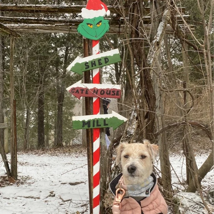 Almonte Town Next we visited Almonte, which has served as the filming location for multiple Hallmark Christmas movies. I was so thankful it had snowed to really bring this to life! First we visited a Christmas Craft fair in the Almonte Square shopping plaza off Ottawa Street, a bit outside the centre of town. Rita was allowed in as there was a Pet Valu in the shopping plaza, and by association was allowed in the plaza! Lucky for her, there were a couple of doggy stalls. She particularly loved her new bandana from Chic Companion. I was more pleased with my purchase of body butter from Naturelle, and the stall owner here really loved Rita too!