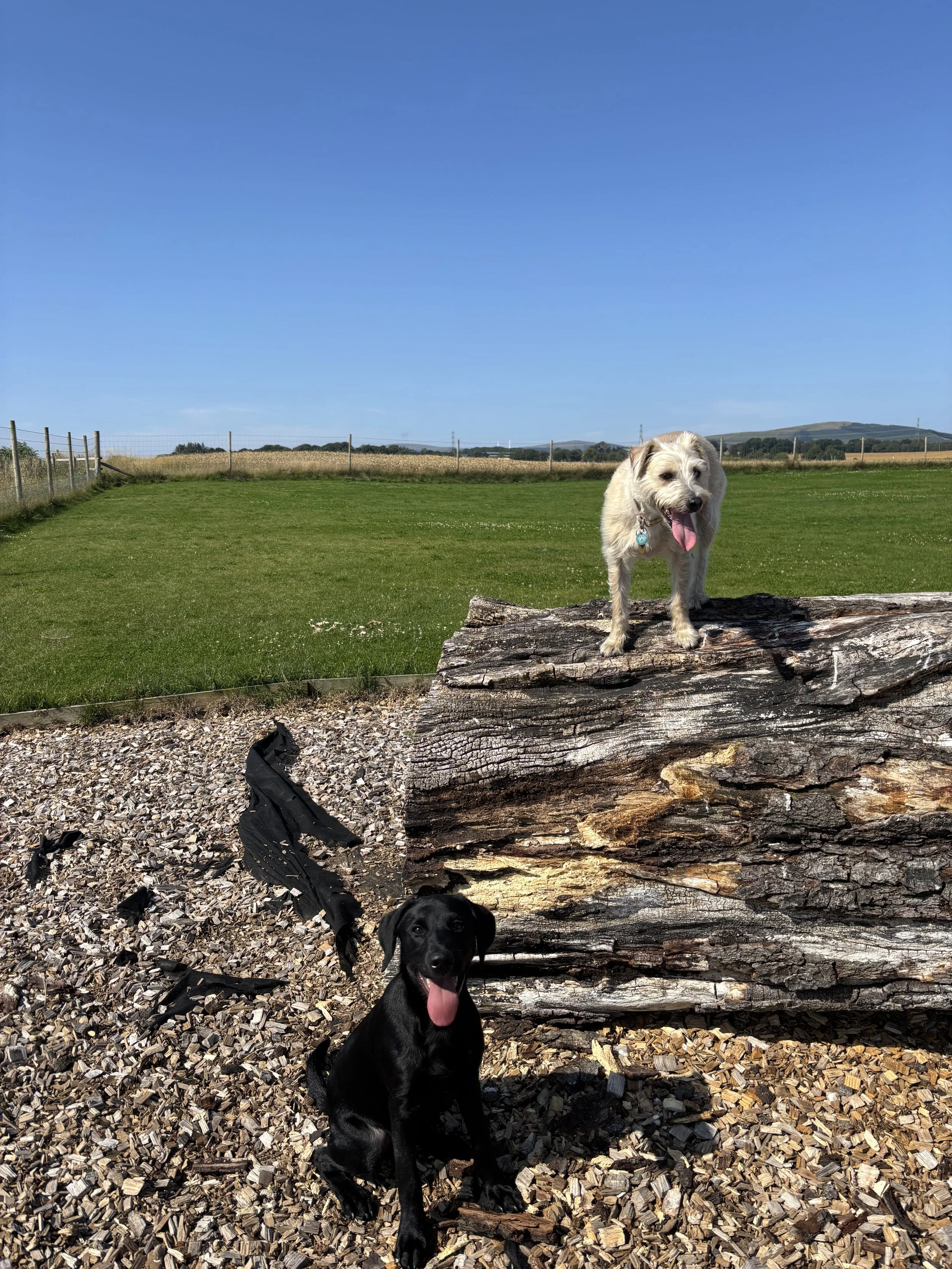 The Pawmill Dog Park only opened last year and has (unsurprisingly) become very popular. The facility contains 3 enclosed fields for private rental, with online booking. We rented two – Agility Express and Sensory. The latter was particularly suitable for my brother’s 4 months old puppy Murphy, but Rita also enjoyed spending time at it after practising her seesaw in the agility field. The park is perhaps better suited to those who just need an enclosed space to let their dog off in – you can even drive right into your rented field. The equipment and sensory parts only took up a small section of each field, which also come with individual shelters, toys to borrow, and a water butt. After investigating the equipment, Rita was happy to play fetch until she tired herself out.