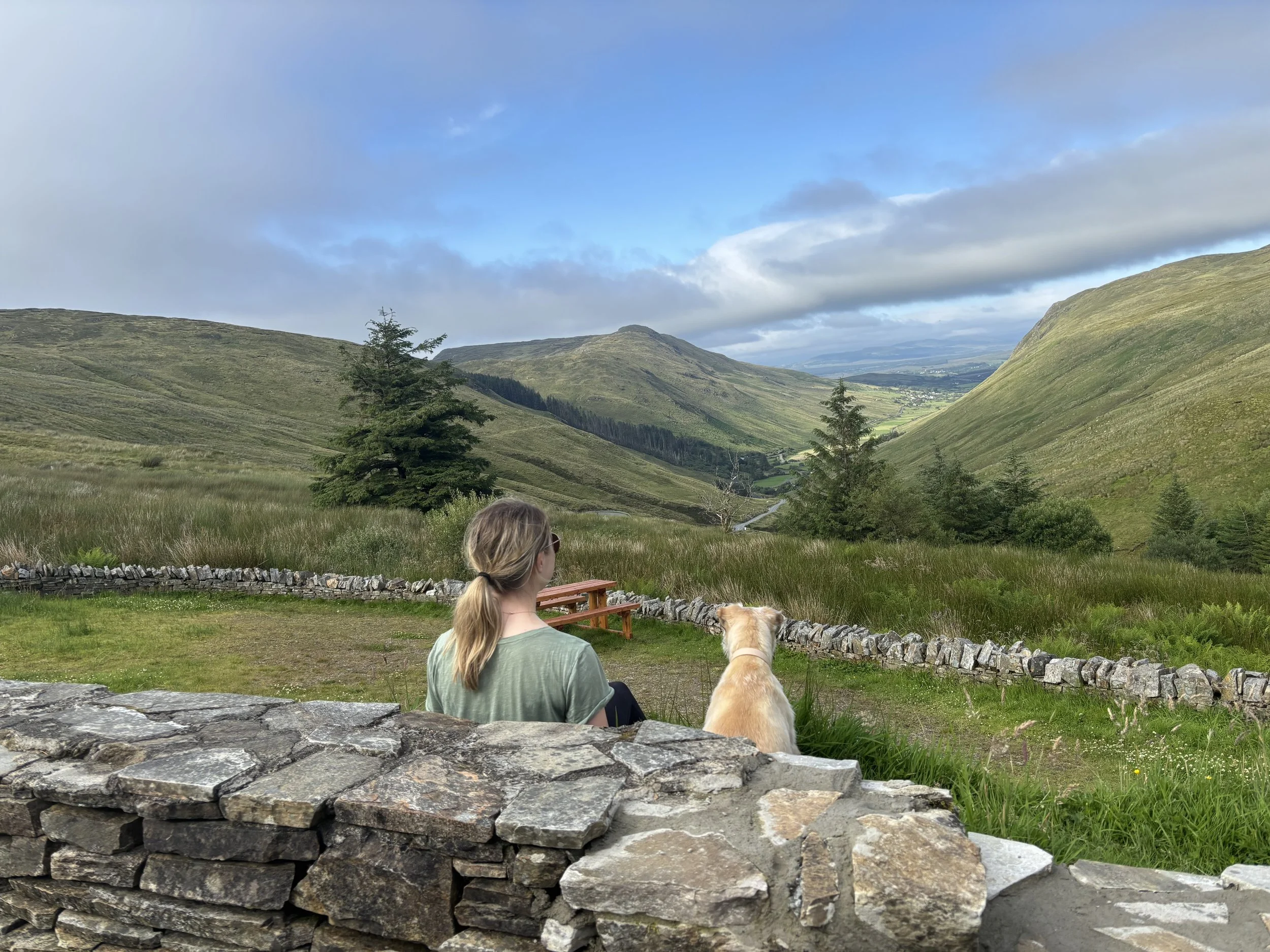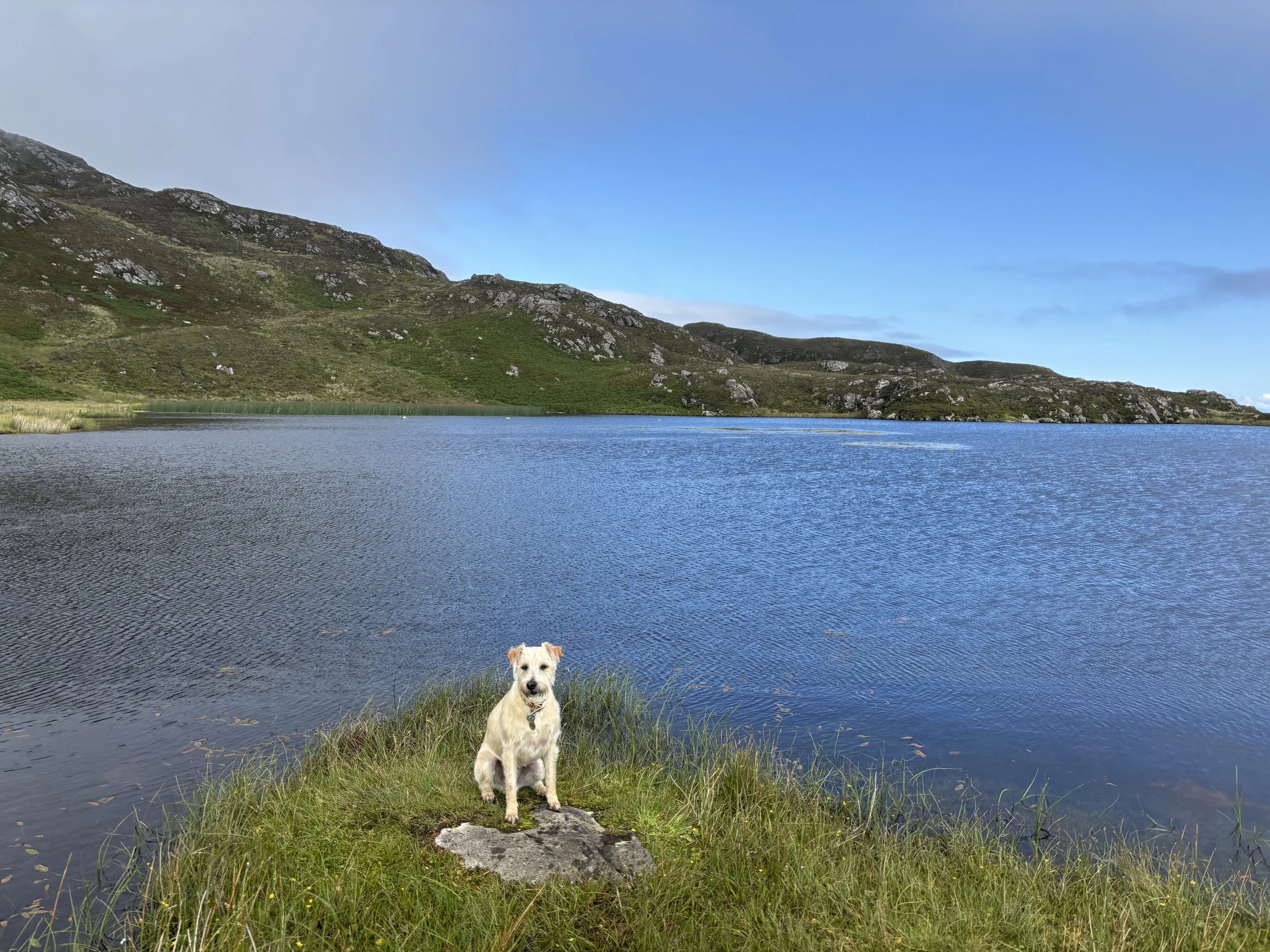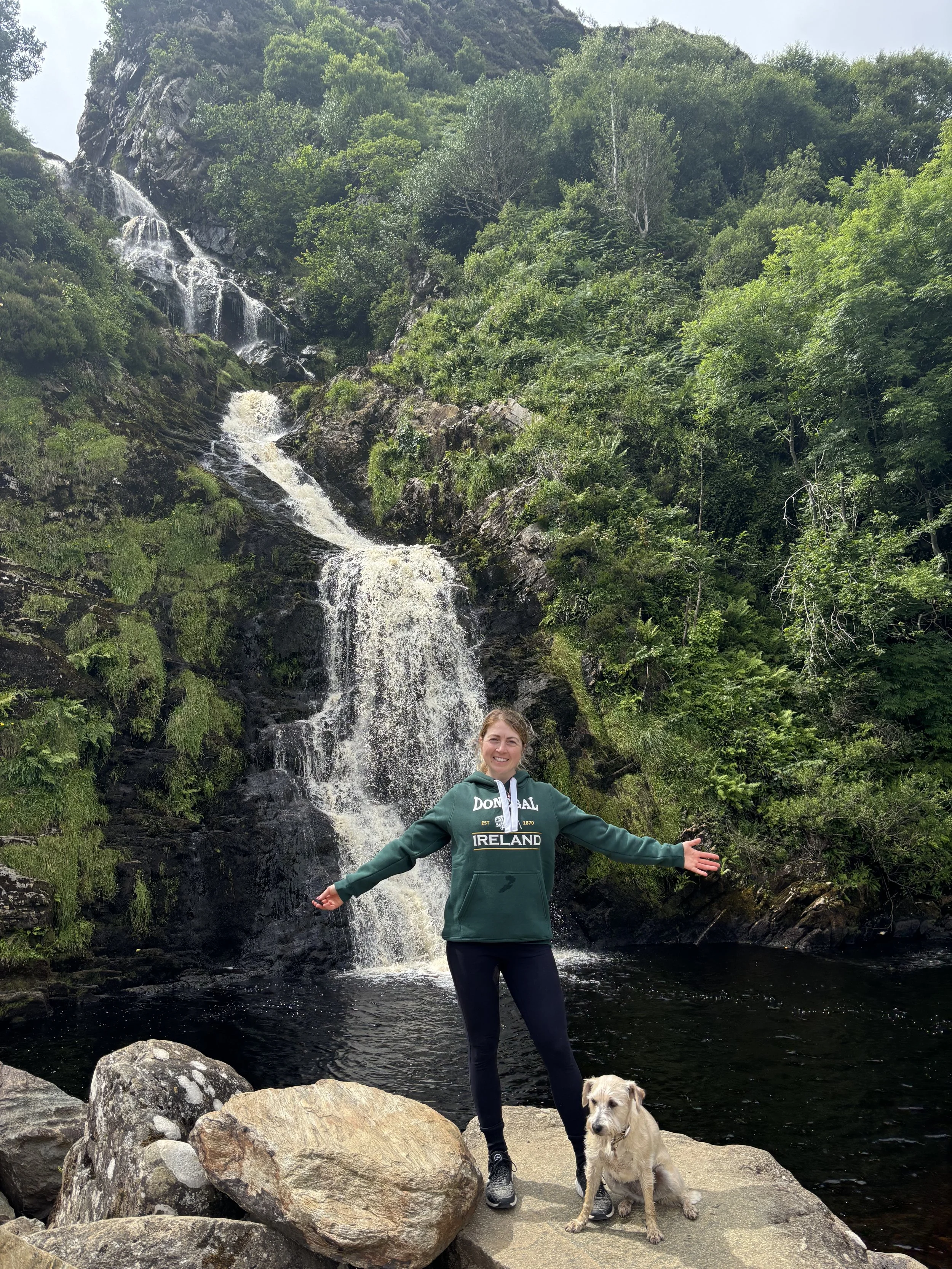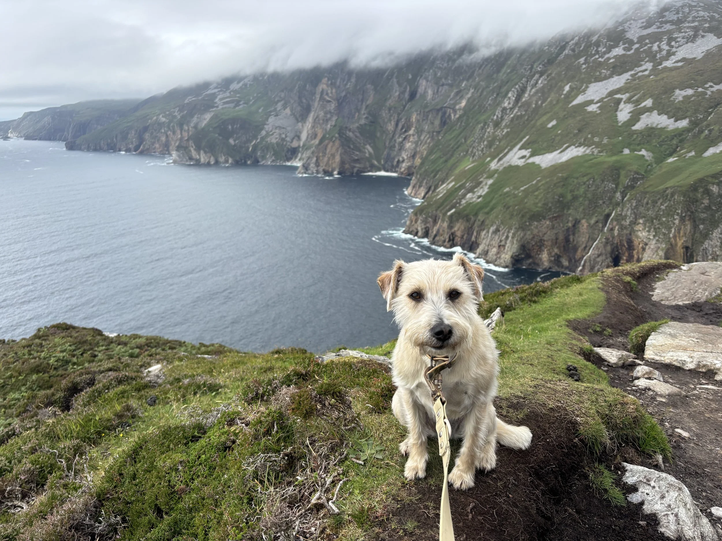 Donegal is home to the highest sea cliffs in Europe, Slieve League (Sliabh Liag). We parked at the visitor centre (there’s also the “cliffs centre”, but this seems to be more unofficial) and took the shuttle to the main viewpoint. It runs roughly every 20 minutes in peak times and dogs are welcome on board. Although it was a bit misty on this day, the cliffs were still impressive. At this viewpoint there’s also a small lake, and you can see across to the WWII lookout tower. Beyond the platform, you can climb up some rough steps for a more elevated view. This path leads to a couple of hiking trails, including the narrow “One Man’s Pass” which runs along the cliff edge. We didn’t have time for a longer hike as we were packing a lot into the day, but even the shorter walk was worthwhile. There are also food/beverage trucks, selling souvenirs too, for something to do while waiting for the bus back down.